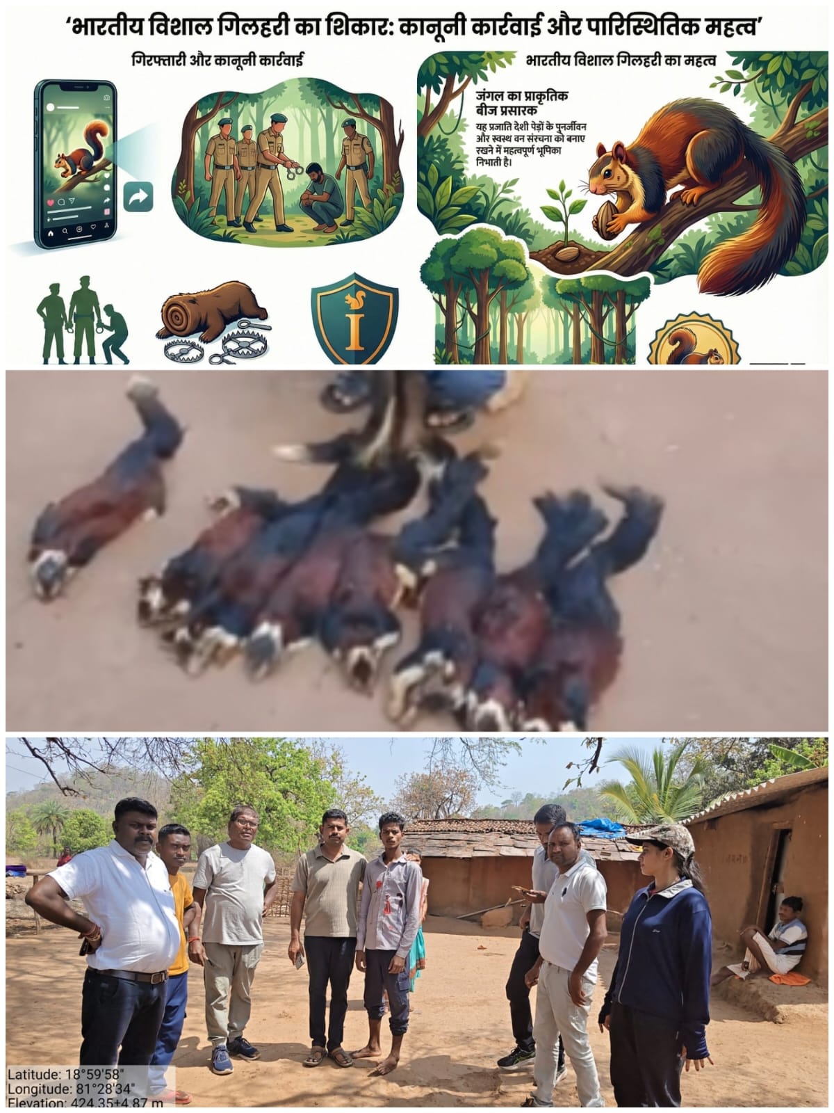 इंस्टाग्राम रील से खुला शिकार का राज: 9 विशाल गिलहरियों के शिकार का आरोपी गिरफ्तार..घर से भालू की खाल बरामद..उदंती-सीतानदी टाइगर रिजर्व, फ्लाइंग स्क्वाड और दंतेवाड़ा वन मंडल की संयुक्त कार्रवाई..देखिए वॉयरल वीडियो..