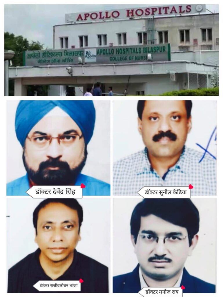 बिलासपुर। ईलाज में लापरवाही बरतने व सबूत मिटाने के लिए अपोलो अस्पताल में काम कर रहे चार डॉक्टरों को पुलिस ने गिरफ्तार किया हैं, साथ ही अस्पताल प्रबंधन पर भी कार्रवाई की जाएगी।