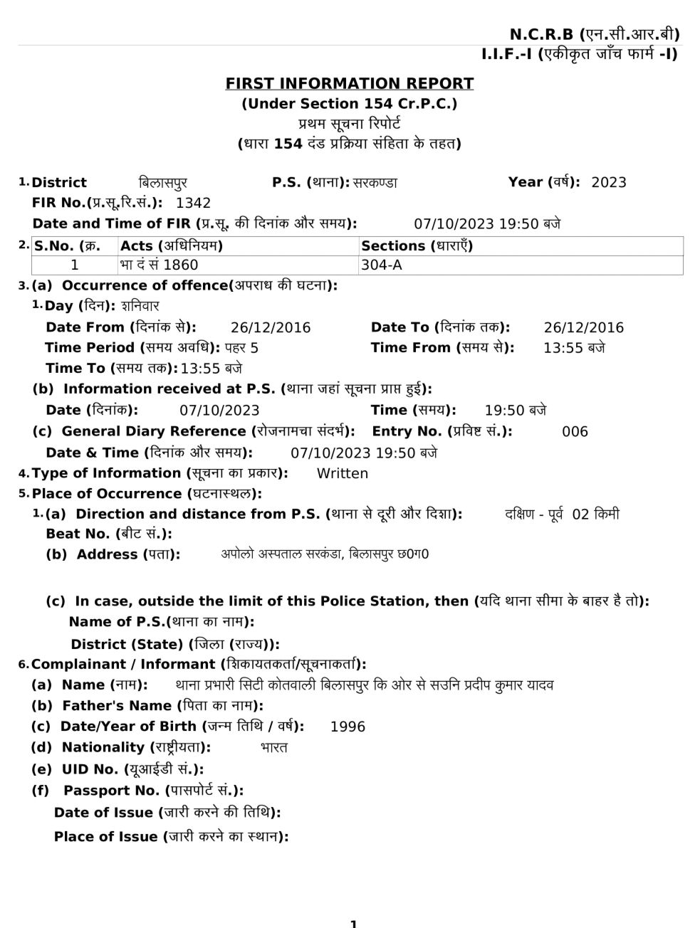 ऐसे लापरवाह डॉक्टरों की शिकायत इंडियन मेडिकल काँसिल में करनी चाहिए और इन डॉक्टरों का लाइसेंस रदद कर जेल की चार दीवारी में कैद कर तबियत से कूटना चाहिए ताकि भविष्य में कोई भी डॉक्टर मरीज के जीवन से खिलवाड़ न कर सके।फिलहाल इस मामले में सभी डाक्टरों को गिरफ्तारी के बाद थाने से ही मुचलके पर छोड़ दिया गया हैं।अब देखना यह हैं कि अपोलो हॉस्पिटल का केंद्रीय प्रबंधन क्या इन चारों डॉक्टरों पर क्या कार्यवाही करता हैं या मामले को रफा-दफा करता हैं।इन चारों लापरवाह डॉक्टरों ने अपोलो हॉस्पिटल का नाम खराब किया हैं।इस मामले की वजह अपोलो हॉस्पिटल से लोगों का भरोसा उठ गया हैं।इस मामले में सरकंडा थाना प्रभारी की भूमिका संदिग्ध हैं।ऐसा क्या हुआ कि रात को ही इन चारों दोषियों को मुचलके में छोड़ देते हैं और इन चारों दोषी डॉक्टरों को बचाने में लगे हुए हैं।जबकि इस मामले में कोर्ट के आदेश से एफ.आई.आर.हुई हैं।सरकंडा थाना प्रभारी की इस हरकत की वजह से पूरा पुलिस महकमा बदनाम हुआ हैं।देखना यह हैं कि इस मामले में बिलासपुर एस.पी. सरकंडा थाना प्रभारी पर क्या कार्यवाही करते हैं।