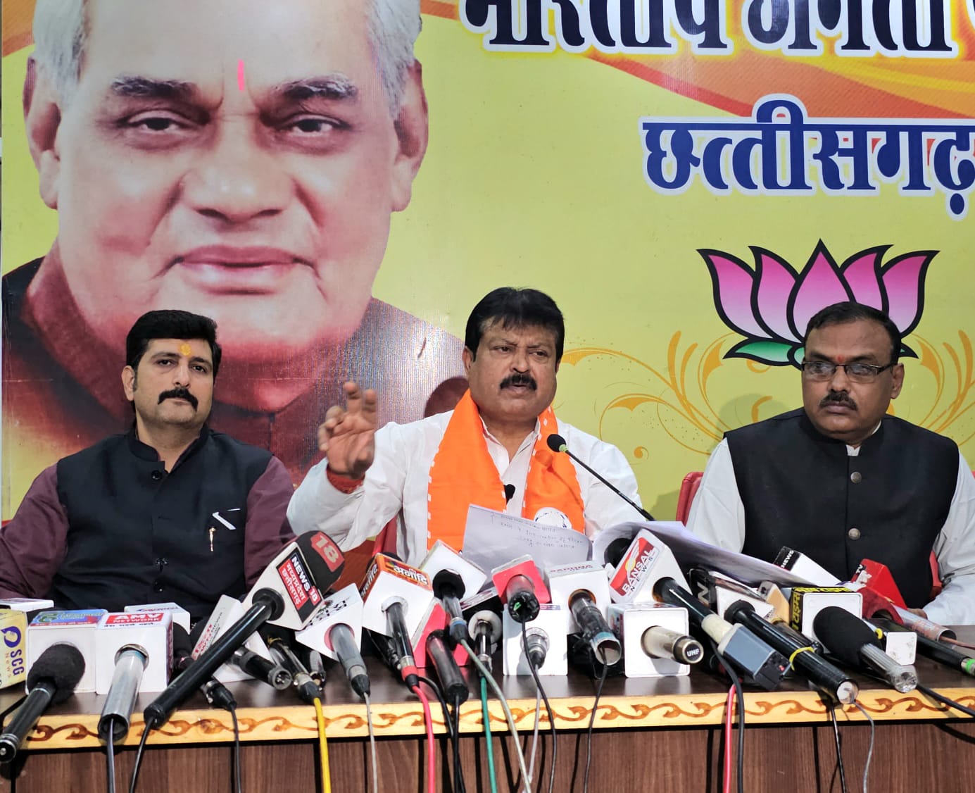 भाजपा प्रदेश महामंत्री श्रीवास्तव ने कहा कि 2023 के विधानसभा चुनाव में कर्जमाफी की घोषणा करके तत्कालीन मुख्यमंत्री बघेल ने यह माना कि प्रदेश के किसानों को कांग्रेस ने कर्ज के दलदल में आकंठ धँसा दिया है। पिछली बार हर किसान का पूरा कर्ज माफ करने का वादा करके इस सरकार ने राष्ट्रीयकृत बैंकों के कर्जे माफ नहीं किए, जिसके चलते कर्ज के बोझ से दबे सैकड़ों किसान आत्महत्या के लिए विवश हुए। श्रीवास्तव ने कहा कि छत्तीसगढ़ में कांग्रेस की सरकार ने अपने पूरे कार्यकाल में घोटाले-ही-घोटाले किए। प्रधानमंत्री मोदी ने छत्तीसगढ़ की कांग्रेस सरकार को 3 लाख करोड़ रुपए दिए लेकिन कांग्रेस ने जनता तक पहुँचने नहीं दिए।श्रीवास्तव ने कटाक्ष किया किया कि झूठी कांग्रेस की झूठी गारंटी का आलम यह है कि छत्तीसगढ़ से लेकर कर्नाटक और हिमाचल तक कांग्रेस की तमाम गारंटियाँ फेल हुई हैं। जिनकी खुद की कोई नहीं गारंटी, वह अब न्याय गारंटियों का पुलिंदा लेकर घूम रहे हैं। 2018 में कांग्रेस ने वादा किया था कि महतारी सम्मान योजना में मातृशक्ति को 500 रुपए हर महीना देंगे पर नहीं दिया। प्रत्येक ग्रामीण परिवार को चार रसोई गैस सिलेंडर मुफ्त में देने का वादा करके नहीं दिया। कांग्रेस का वादा था कि छात्र-छात्राओं को मुफ्त परिवहन की सुविधा देंगे, पर नहीं दी। कांग्रेस ने वादा किया था कि प्रत्येक पाँच सदस्यीय भूमिहीन ग्रामीण परिवार को घर और बाड़ी के लिए जमीन देंगे, पर नहीं दी। 50 हजार शिक्षकों की रिक्त पदों पर भर्तियाँ पाँच साल में नहीं की। छत्तीसगढ़ में 20 लाख रुपए का मुफ्त इलाज नहीं मिला, सबको मकान देने की बात की, 200 फूड प्रोसेसिंग युनिट नहीं लगे, वृद्धजनों को 1500 रुपए पेंशन नहीं मिली। ये सारी गारंटियाँ फेल हुईं, जबकि ‘मोदी की गारंटी’ के तहत प्रदेश में भाजपा सरकार लगातार तेजी से अपने तमाम वादों को पूरा कर रही है।