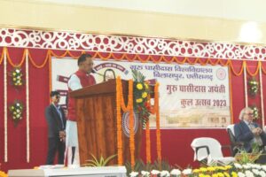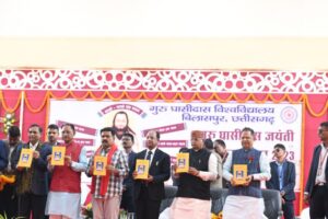 यह बातें मुख्यमंत्री विष्णुदेव साय ने सोमवार को बिलासपुर के गुरू घासीदास केन्द्रीय विश्वविद्यालय में आयोजित बाबा घासीदास की जयंती समारोह एवं कुल उत्सव में कहा। कार्यक्रम की अध्यक्षता कुलपति आलोक कुमार चक्रवाल ने की। मुख्यमंत्री ने इस अवसर पर कुलपति द्बारा संपादित किताब ‘गुरू घासीदास सतनाम पंथ के प्रवर्तक’ का विमोचन भी किया। साय ने विश्वविद्यालय द्बारा आयोजित प्रतियोगिताओं के विजेता छात्र -छात्राओं को सम्मानित भी किया।