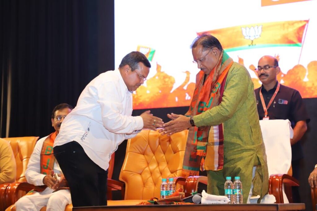 रायपुर। भारतीय जनता पार्टी की रीति-नीति और प्रधानमंत्री नरेंद्र मोदी के नेतृत्व में देश में चल रहीं जनकल्याणकारी योजनाओं व विकसित भारत के संकल्प से प्रभावित होकर गुरुवार को काँकेर के पूर्व विधायक शिशुपाल सोरी सहित सैकड़ों राजनीतिक व सामाजिक कार्यकर्ताओं, जनप्रतिनिधियों ने कांग्रेस से इस्तीफा देकर भाजपा प्रवेश किया। लोकसभा के लिए प्रथम चरण में होने जा रहे बस्तर लोकसभा में मतदान से ठीक एक दिन पहले बस्तर में कांग्रेस को बड़ा झटका लगा है। प्रदेश में भाजपा प्रवेश का सिलसिला लगातार जारी है। भाजपा प्रवेश उत्सव में मुख्यमंत्री विष्णुदेव साय और उप मुख्यमंत्री अरुण साव ने नवप्रवेशी भाजपा सदस्यों को भाजपा का दुपट्टा पहनाकर उनका भाजपा परिवार में स्वागत किया।