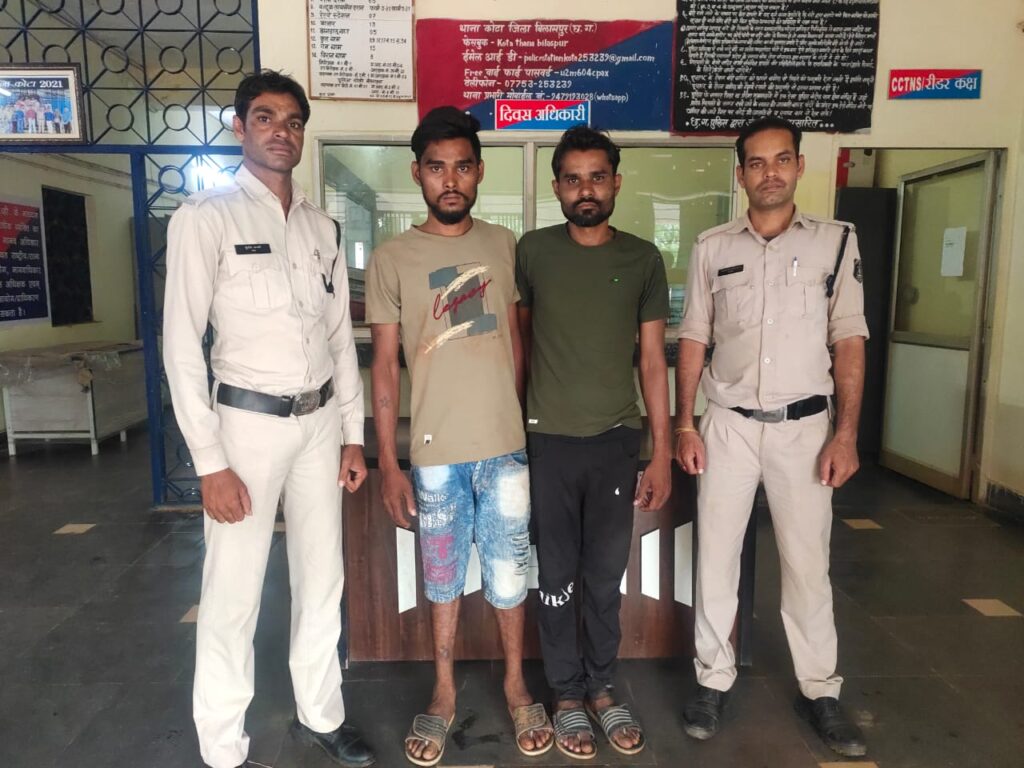 बिलासपुर।राहगीर से लूटपाट करने वाले दो आरोपियों को कोटा पुलिस ने गिरफ्तार कर न्यायिक रिमांड पर भेजा है। प्रार्थी वीरेंद्र कुमार साहू ने थाने में शिकायत दर्ज कराई कि मैं अपने साथी धनंजय के साथ बाइक में गनियारी से कृषि दवा खरीद कर घुट्कु जा रहा था शाम करीब 6:30 पर गनियारी शराब दुकान के पास रुका था उसी समय कुनानु एवं सरातू वर्मा नामक व्यक्ति आय और उससे धक्का-मुक्की की आरोपियों ने मारपीट कर प्रार्थी से मोबाइल और नगद 1000 भी लूट ले ले लिए प्रार्थी की रिपोर्ट पर अपराध पंजीबद्ध कर त्वरित कार्रवाई करते हुए आदतन बदमाश कुनानू वर्मा 25 वर्ष गनियारी एवं सरातु वर्मा 35 साल गनियारी को गिरफ्तार कर न्यायिक रिमांड पर भेजा गया आरोपियों के कब्जे से नगद 500 और मोबाइल भी जप्त किया गया