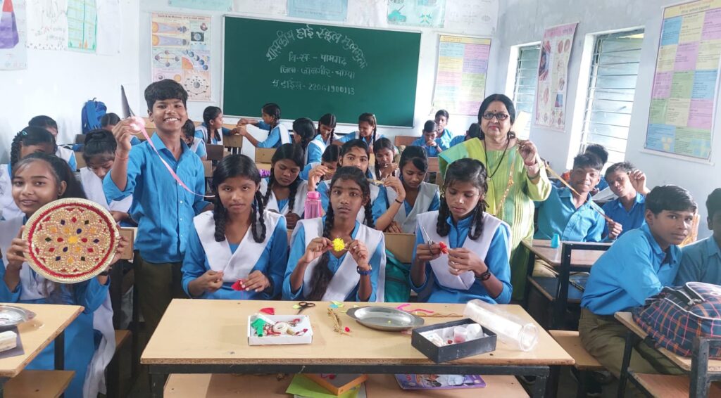 बिलासपुर।नवाचारी व्याख्याता श्रीमती ज्योति सक्सेना के द्वारा शासकीय हाई स्कूल मुलमुला में शनिवार को अन्य गतिविधियों के अंतर्गत छात्र-छात्राओं को थाली सजाओ,फ्रेंडशिप बैंड राखी बनाने प्रशिक्षण दिया गया .इसके साथ ही पानी पर बनने वाली रंगोली भी सिखाई गई सभी छात्र- छात्राओं ने रुचि के साथ इस प्रशिक्षण का लाभ लेकर कम बजट में होममेड राखी घर पर रखे मोली धागा, मोती, इत्यादि सामान से थाली को सजाया पानी पर बनने वाली रंगोली विद्यार्थियों ने पहले नही देखी थी उसे बहुत ही आनंद के साथ सीखा इसके साथ ही ज्योति सक्सेना मैडम ने सच्ची मित्रता क्या होती है विस्तार से समझाया सभी विद्यार्थियों को अच्छे मित्रवत संबंध रखने का संदेश दिया ,एक दूसरे के साथ सच्ची मित्रता रखनी चाहिए.एक दूसरे का सम्मान करना चाहिए अपने स्वार्थ हित के लिए अपने मित्र का अहित ना करें हर सुख दुख में साथ दें यही सच्ची दोस्ती कहलाती है. उसके गलत का साथ ना दें बताएं उसे सच्ची राह पर चलने की सलाह दें.सभी विद्यार्थियों ने स्वयं के बनाए हुए फ्रेंडशिप बैंड एक दूसरे की कलाई में बांधकर सच्ची दोस्ती की प्रतिज्ञा ली इस कार्यक्रम में मूलमुला की सीनियर व्याख्याता शैल शर्मा मैडम ने भी मित्रता दिवस पर अपने विचार व्यक्त किए सभी शिक्षकों ने भी एक दूसरे की कलाई पर फ्रेंडशिप बैंड बांधकर सच्ची दोस्ती का संदेश दिया. खुशबू साहू, गीता, सीता सिम्मी, कोमल, भूमि, काजोल, पूजा, स्नेहा, रवि, साहिल, आदित्य, हीरालाल, योगेश, शीतल, अमोली इनकी राखी एवं फ्रेंडशिप अति सुन्दर बने थे. सभी विद्यार्थियों का सराहनीय प्रयास से अन्य गतिविधि में भी मुलमुला स्कूल के विद्यार्थी पीछे नही है. इस कार्यक्रम में प्राचार्य विमलेश पाण्डेय, वरिष्ठ व्याख्याता शैल शर्मा , व्याख्याता दिनेश कुमार बंजारे के साथ ही मिडिल स्कूल एवं प्राथमिक शाला के शिक्षक साथियों का भी साथ रहा. सभी ने एक दूसरे को मित्रता दिवस की बधाई दी. नवाचारी व्याख्याता श्रीमती ज्योति सक्सेना पढ़ाई में तो नवाचार से विद्यार्थियों को पढ़ने के लिए प्रेरित कर रही है साथ ही कौशल बिकास, रचनात्मक लेखन के लिए प्रयास करती रहती है. विद्यार्थियों के हित के लिए समर्पित रहती है.