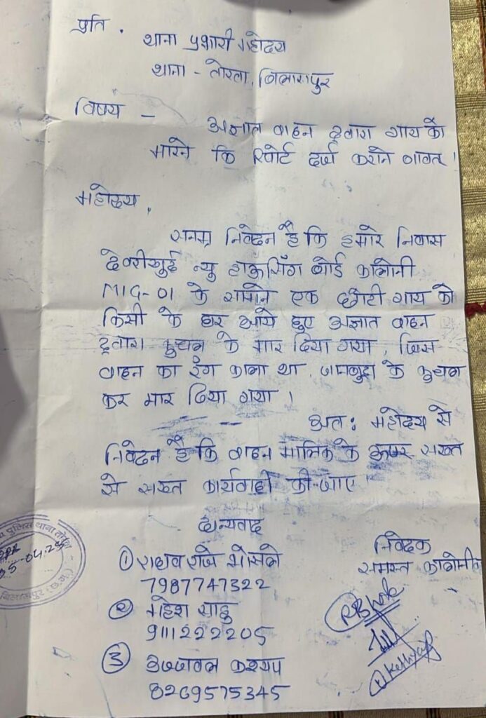 गौ सेवकों ने थाने में दर्ज कराई शिकायत, ड्राइवर के खिलाफ सख्त कार्रवाई की मांग..