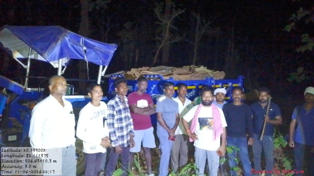 वन विभाग को मिली गोपनीय सूचना के आधार पर 11 अप्रैल 2026 की रात सीतानदी अभयारण्य के रिसगांव परिक्षेत्र के जोरातराई परिसर में गश्त के दौरान टीम ने कार्रवाई की। इस दौरान आरोपियों को बिना अनुमति जंगल में घुसकर साजा और अन्य मिश्रित प्रजाति के पेड़ों की कटाई करते हुए पकड़ा गया। आरोपी कटे हुए लकड़ी को ट्रैक्टर-ट्रॉली में लोड कर अवैध परिवहन की तैयारी में थे।