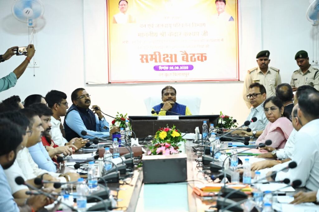 बिलासपुर । वन एवं जलवायु परिवर्तन विभाग के मंत्री केदार कश्यप ने आज बिलासपुर जिला कार्यालय के मंथन सभागार में वन विभाग के काम-काज की विस्तृत समीक्षा की। इस अवसर पर उन्होंने इको-पर्यटन को प्रोत्साहित करने, तेंदूपत्ता संग्राहकों की मजदूरी का समय पर भुगतान सुनिश्चित करने और चरण पादुका योजना के विस्तार सहित कई महत्वपूर्ण दिशा-निर्देश दिए।