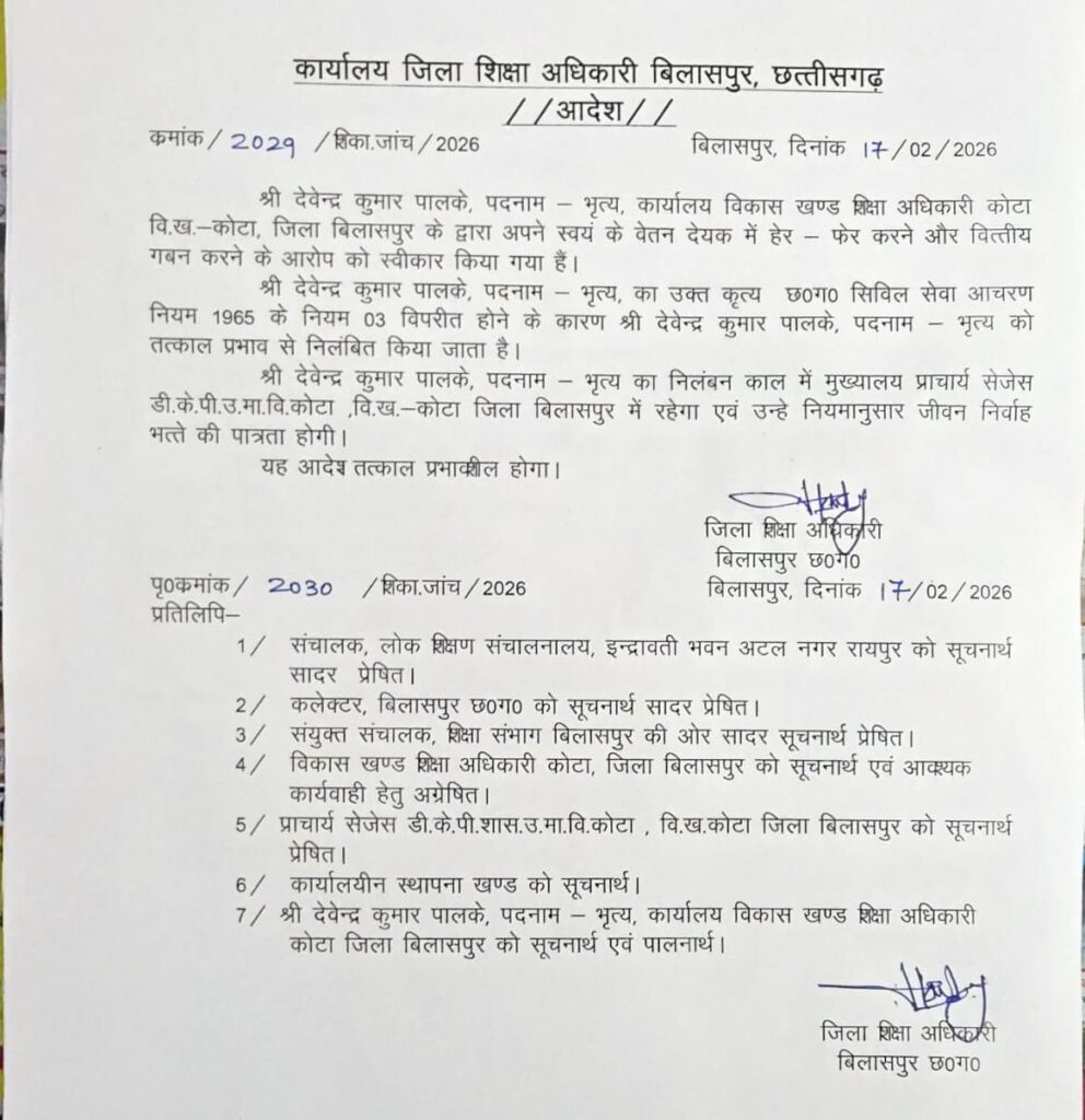 कार्रवाई के बावजूद मामला कई गंभीर सवाल खड़े कर रहा है। शिकायत में तत्कालीन विकासखंड शिक्षा अधिकारी कोटा और वर्तमान जिला शिक्षा अधिकारी विजय टांडे की भूमिका को लेकर भी आरोप लगाए गए थे। आरोप है कि यह पूरा वित्तीय अनियमितताओं का मामला उनके कार्यकाल में हुआ, लेकिन अब तक उनके खिलाफ कोई ठोस कार्रवाई नहीं हुई है।