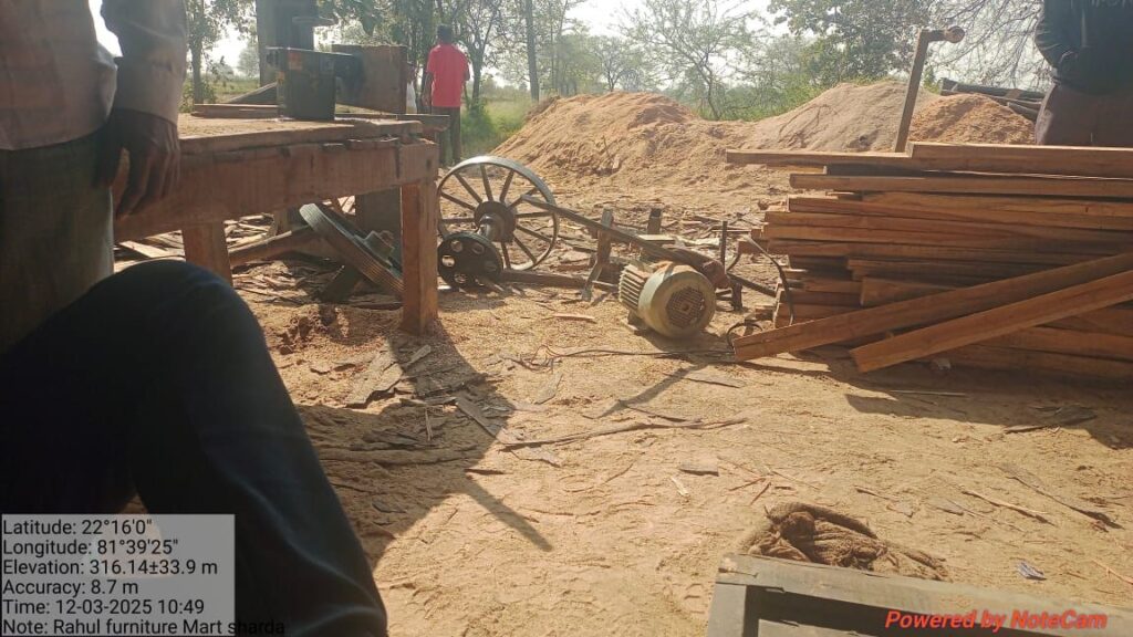 वनमण्डलाधिकारी मुंगेली के अनुसार विभाग को सूचना मिली थी कि ग्राम सारधा स्थित राहुल फर्नीचर मार्ट में मिनी आरा मशीन के जरिए अवैध रूप से सागौन की लकड़ी की कटाई और फर्नीचर निर्माण किया जा रहा है। शिकायत की पुष्टि के बाद विभाग की संयुक्त टीम ने छापा मारा, जिसमें 1.394 घनमीटर सागौन के 11 लट्ठे बरामद किए गए। साथ ही आरा मशीन को सील कर जप्ती की कार्रवाई काष्ठ चिरान अधिनियम 1984 के अंतर्गत पीआरओ 19214/6 जारी करते हुए की गई।