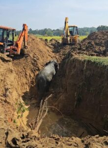 तीन घंटे की मशक्कत के बाद सभी हाथी सुरक्षित निकाले गए, एक शावक भी था शामिल..