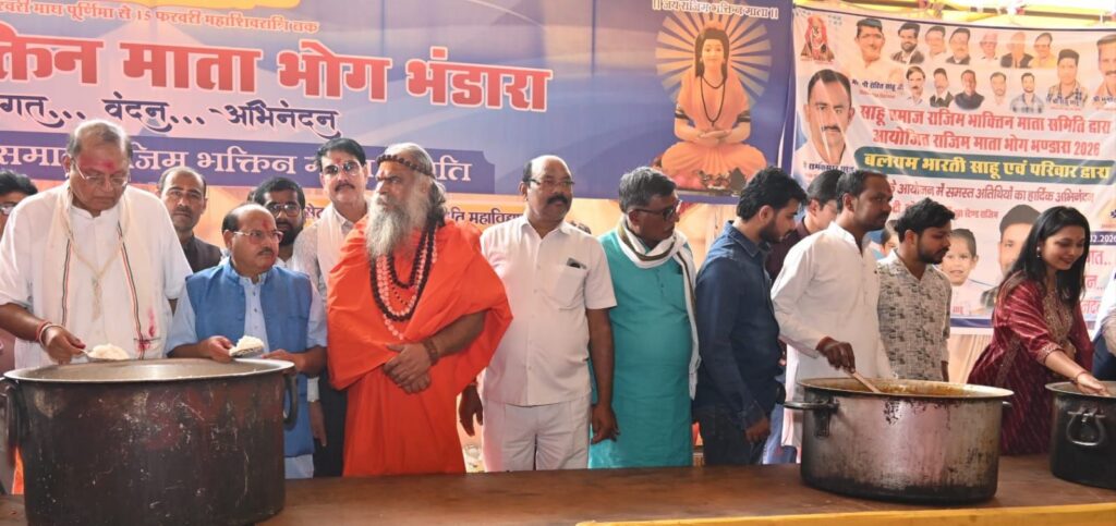 राजिम। पवित्र त्रिवेणी संगम की धरती पर आयोजित राजिम कुंभ मेला में श्रद्धा और सेवा का अद्भुत संगम देखने को मिला। राजिम भक्तिन माता समिति द्वारा आयोजित भोग भंडारे का 14वां दिवस अत्यंत भक्ति, उत्साह और सामाजिक सहभागिता के साथ संपन्न हुआ। हजारों श्रद्धालुओं ने प्रसाद ग्रहण किया और आयोजन स्थल पर भक्ति का वातावरण बना रहा।