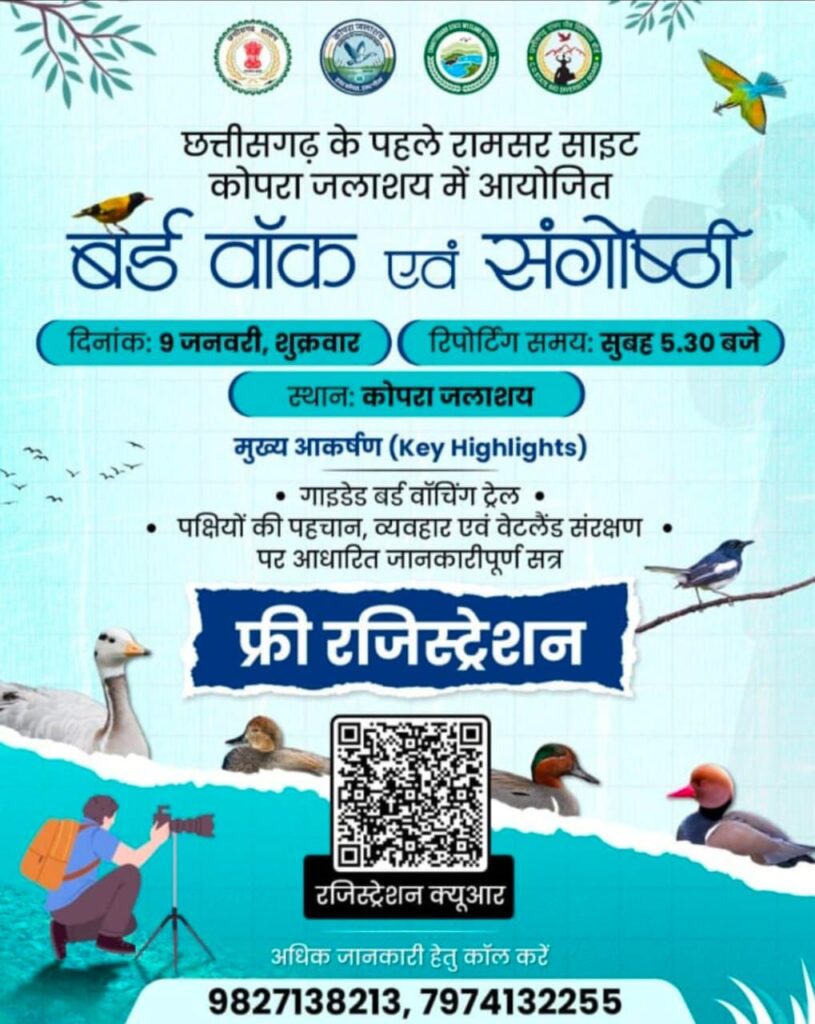 बिलासपुर । छत्तीसगढ़ के लिए गौरव का पल है कि बिलासपुर जिले के कोपरा जलाशय को भारत सरकार ने प्रदेश का पहला रामसर साइट (अंतरराष्ट्रीय महत्व का दलदली क्षेत्र) घोषित कर दिया है। इस बड़ी उपलब्धि का जश्न मनाने के लिए 9 जनवरी को तखतपुर क्षेत्र के कोपरा जलाशय और सकरी स्थित वन चेतना केंद्र में भव्य ‘बर्ड वॉक’ और संगोष्ठी का आयोजन किया गया है। कार्यक्रम में मुख्य अतिथि के रूप में केंद्रीय राज्य मंत्री तोखन साहू शामिल होंगे। कोपरा जलाशय अपनी प्राकृतिक सुंदरता और देश-विदेश से आने वाले प्रवासी पक्षियों के लिए मशहूर है, जिसे अब वैश्विक पहचान मिल गई है।