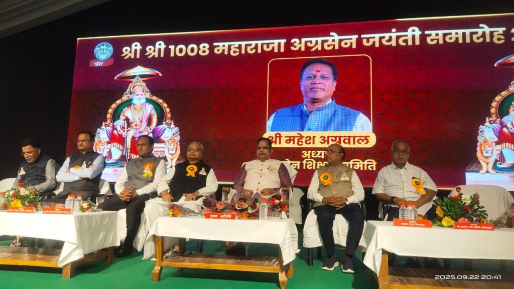 अग्रसेन जयंती के उपलक्ष्य में बिलासपुर के विभिन्न समाजों के प्रमुखों को सम्मानित किया गया, जिनमें ब्राह्मण, सिंधी, गुजराती, पंजाबी, जैन, कायस्थ, भूमिहार, राजपूत, मारवाड़ी आदि समाजों के प्रतिनिधि शामिल रहे।