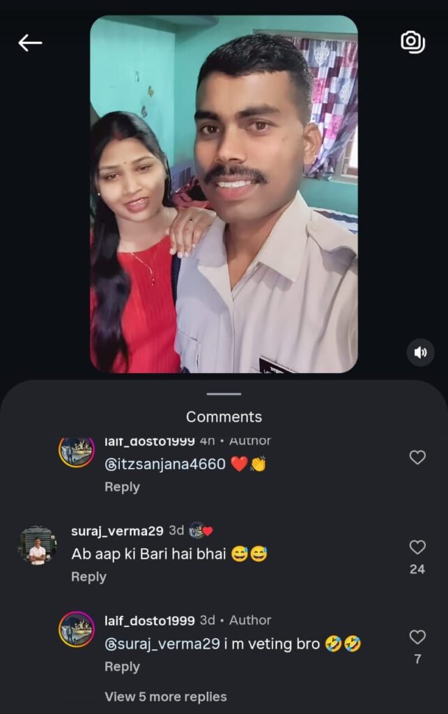 अब इंस्टाग्राम आईडी laif_dosto1999 से एक अन्य जवान के आधा दर्जन से अधिक वीडियो वायरल हो रहे हैं, जिनमें वह वर्दी पहनकर अपनी पत्नी के साथ रील बनाता नजर आ रहा है। इन वीडियो पर सोशल मीडिया यूजर्स जमकर प्रतिक्रिया दे रहे हैं।