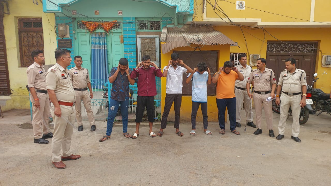 पुलिस ने आरोपियों को घटनास्थल से पैदल जुलूस में निकाला और रास्ते भर उठक-बैठक भी कराई। पुलिस ने आरोपियों के खिलाफ गंभीर धाराओं में मामला दर्ज कर उन्हें न्यायिक हिरासत में भेज दिया है।