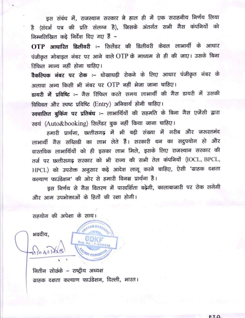 फाउंडेशन ने यह भी सुझाव दिया कि राजस्थान में लागू किए गए सख्त नियमों को छत्तीसगढ़ में भी लागू किया जाए। राजस्थान में OTP के जरिए ही गैस की डिलीवरी दी जा रही है, जिससे फर्जीवाड़े में काफी कमी आई है। इसी मॉडल को अपनाने की दिशा में अब छत्तीसगढ़ भी आगे बढ़ रहा है।