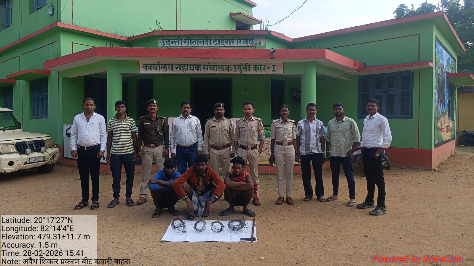 यह कार्रवाई 28 फरवरी 2026 को उदंती सीतानदी टाइगर रिजर्व के अंतर्गत दक्षिण उदंती वन परिक्षेत्र के बंजारीबाहरा बीट, कक्ष क्रमांक 21 (कोर क्षेत्र) में की गई। उस समय दक्षिण उदंती, उत्तर उदंती, इंदागांव-धुरवागुड़ी (बफर) और तारेंगा (बफर) क्षेत्र का वन अमला अवैध शिकार और आगजनी रोकने के लिए संयुक्त गश्त पर था।