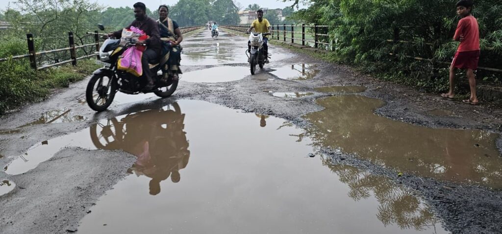 नतीजा यह हुआ कि सड़क पर जगह-जगह गड्ढे उभर आए हैं, जिनकी गहराई आधे फीट तक पहुँच चुकी है। खासकर, पुराने पुल का ऊपरी हिस्सा तो अब गड्ढों का बाजार बन चुका है। बारिश के बाद तो हालात और भी बुरे हो गए,सड़क कीचड़ से भर गई है, और वाहन चालकों को लगता है, जैसे वे तैरकर जा रहे हों।