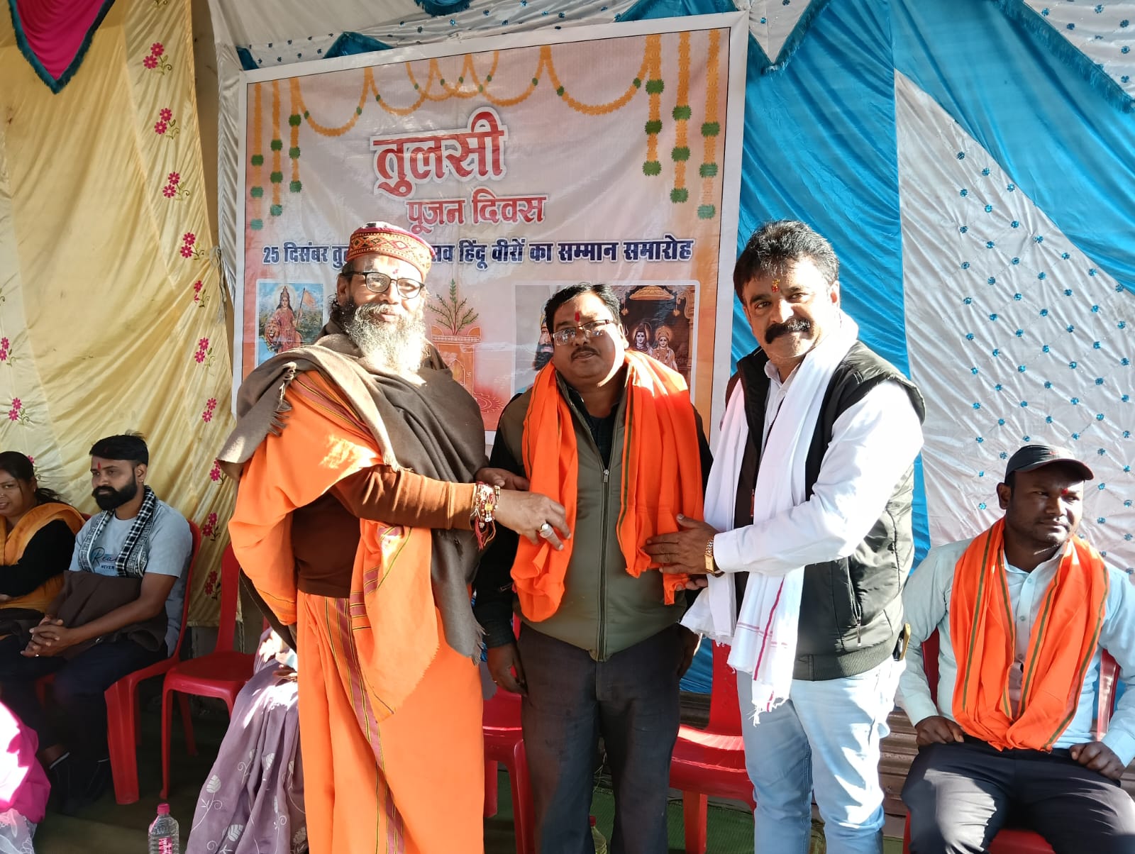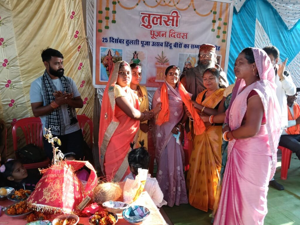 कार्यक्रम की शुरुआत माता तुलसी और मातिन दाई की पूजा और दीप प्रज्वलित कर की गई। गांव की महिलाओं और पुरुषों ने सामूहिक रूप से तुलसी माता की आरती की। इस दौरान विश्व हिंदू परिषद के जिलाध्यक्ष हर्ष छाबरिया ने कहा कि समाज में धर्म परिवर्तन का खेल चल रहा है। उन्होंने ग्रामीणों से एकजुट होने की अपील करते हुए भरोसा दिलाया कि धर्मांतरण रोकने के लिए उनका संगठन हर संभव मदद और प्रयास करेगा।